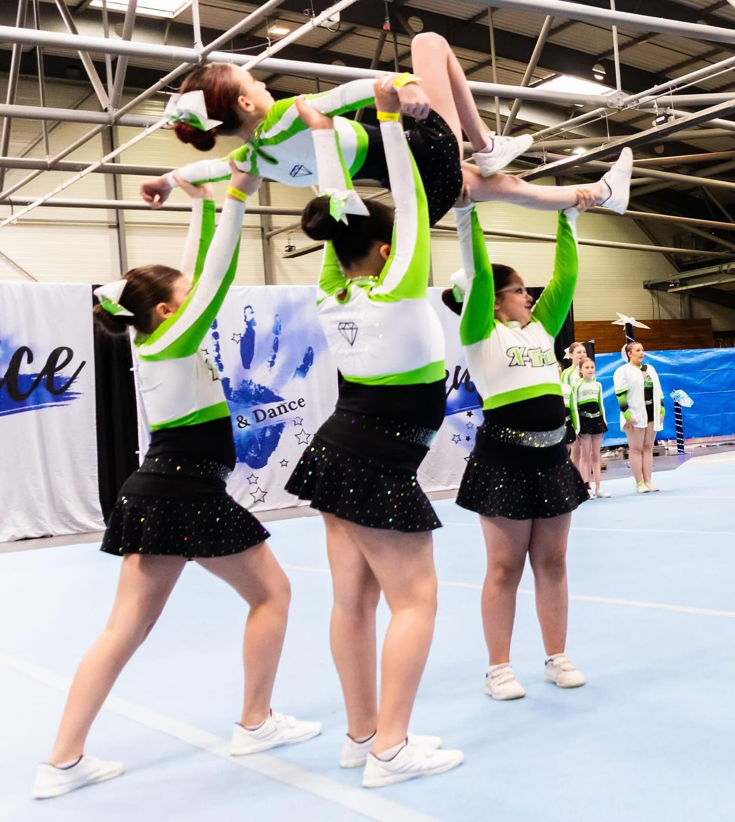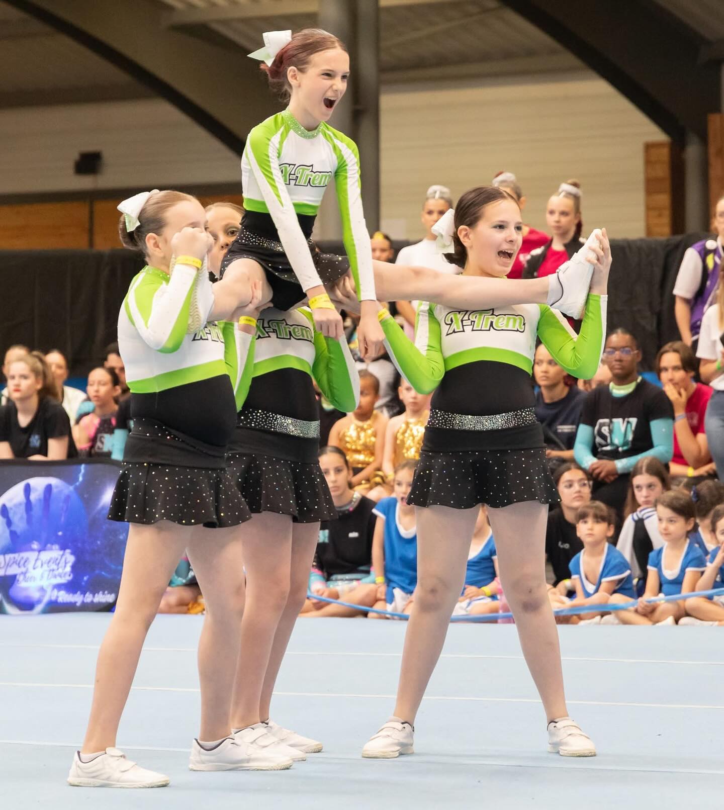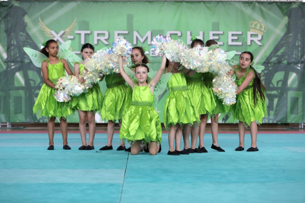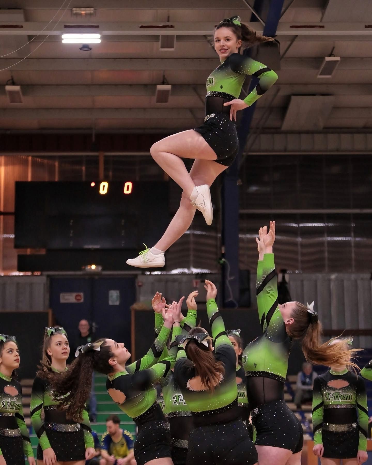 Encadrée par Clémence, Lucie et Ophélie, cette équipe travaille sur une routine de cheerleading.